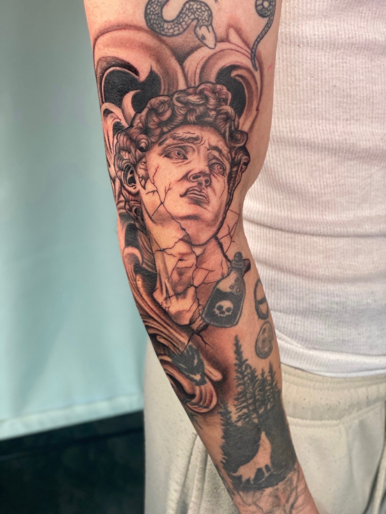 "Hi there, I’m Miguel, a tattoo artist with a love for creating meaningful, custom designs. With 7 years in the industry, I specialize in realism and more, focusing on delivering top-quality tattoos in a cozy, stress-free space. Whether you’re getting inked for the first time or expanding your collection, I’m committed to making the process enjoyable and the results something you’ll cherish forever."
